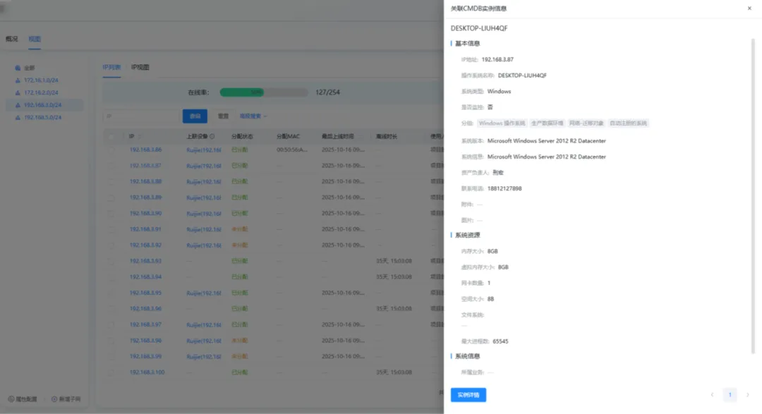IP与资产信息割裂是运维中的常见痛点,它会导致故障排查时需跨系统查数据、资产核对时信息不同步,大幅降低运维效率。乐维网管支持通过IP获取CMDB实例数据,获取后点击IP查询即可获得CMDB实例数据,无需在多系统间切换查询,打通 IP 地址与CMDB的信息壁垒。