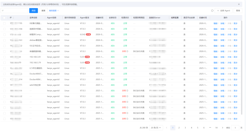支持Agent健康检查、批量导入、批量安装与手动安装、卸载、删除、熔断(设置、下发、回收);支持自动注册,无需手动添加主机